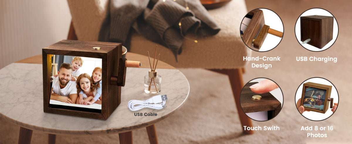 Custom Flip Book Photo Frame, Hand-Crank Wooden Photo Album, creative Gift (8/16 Photos)