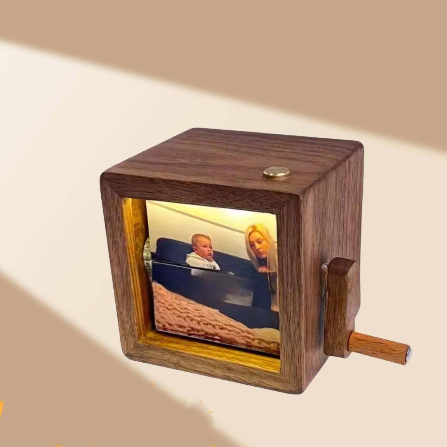 Custom Flip Book Photo Frame, Hand-Crank Wooden Photo Album, creative Gift (8/16 Photos)